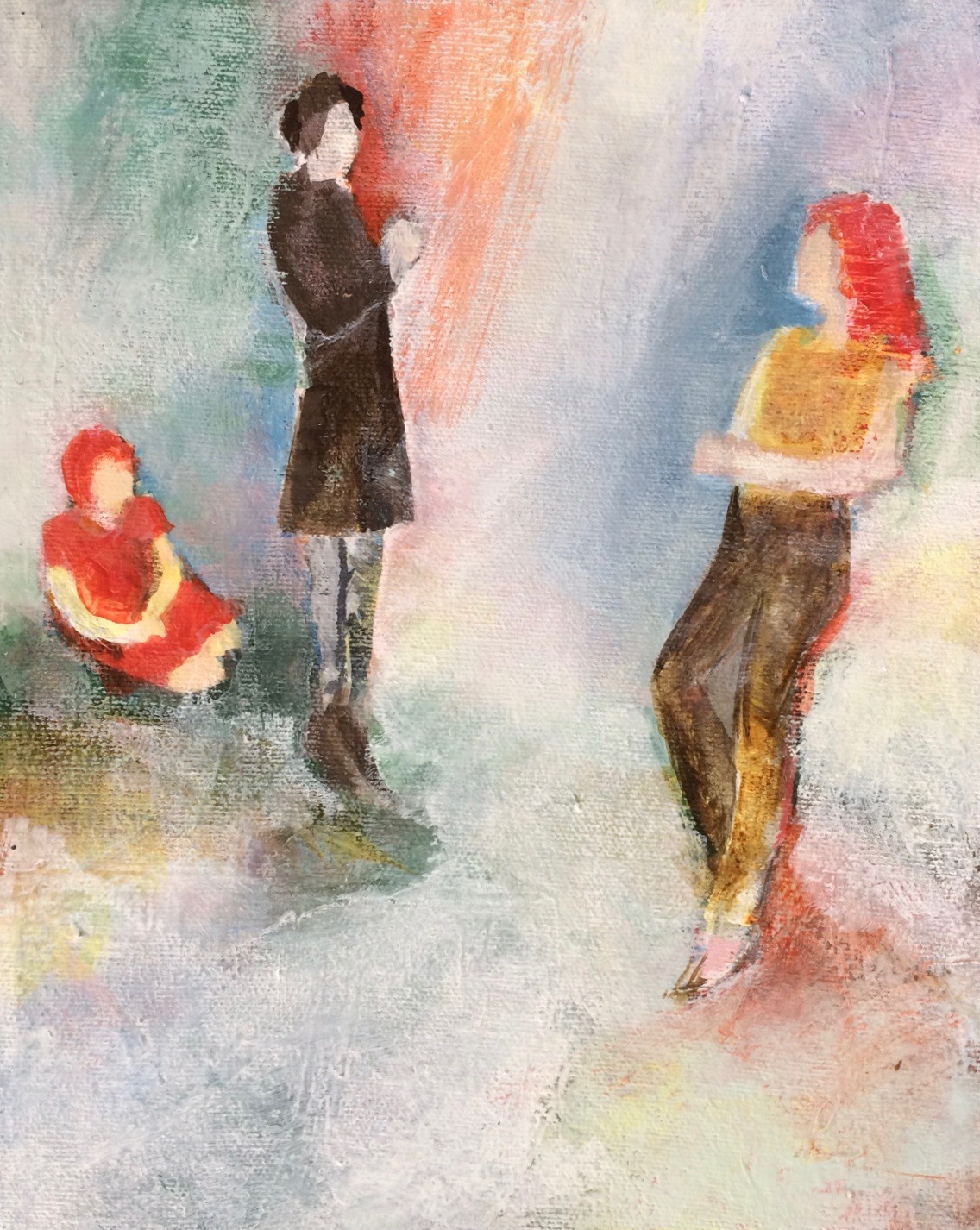 Our final assignment was to create a series incorporating the real and abstract. I decided to try to incorporate figurative work into an abstract format. It took me in a totally different direction, never having painted figures before. I enjoyed doing it but I'm not sure if I'd follow up on much that I explored--except maybe for the second assignment with the grid and the realistic objects.